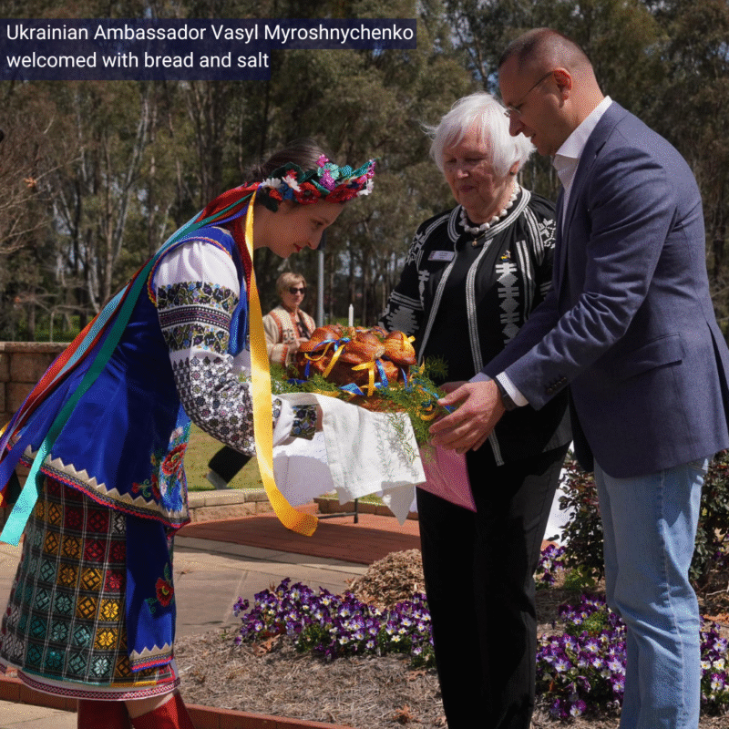 The event was attended by the Ambassador of Ukraine, Vasyl Myroshnychenko, and his wife Liana, the Hon Stephen Lawrence MLC representing Hon Stephen Kamper MP, NSW Minister for Multiculturalism, and several Councillors from Cowra Council, as well as 140 members and friends.