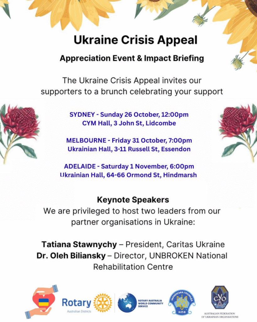 Join us in Sydney tomorrow (Sun 26 Oct), and next week in Melbourne (Fri 31 Oct) and Adelaide (Sat 1 Nov), to meet Tatiana and Dr Biliansky – and hear how your support through the Ukraine Crisis Appeal is transforming lives.