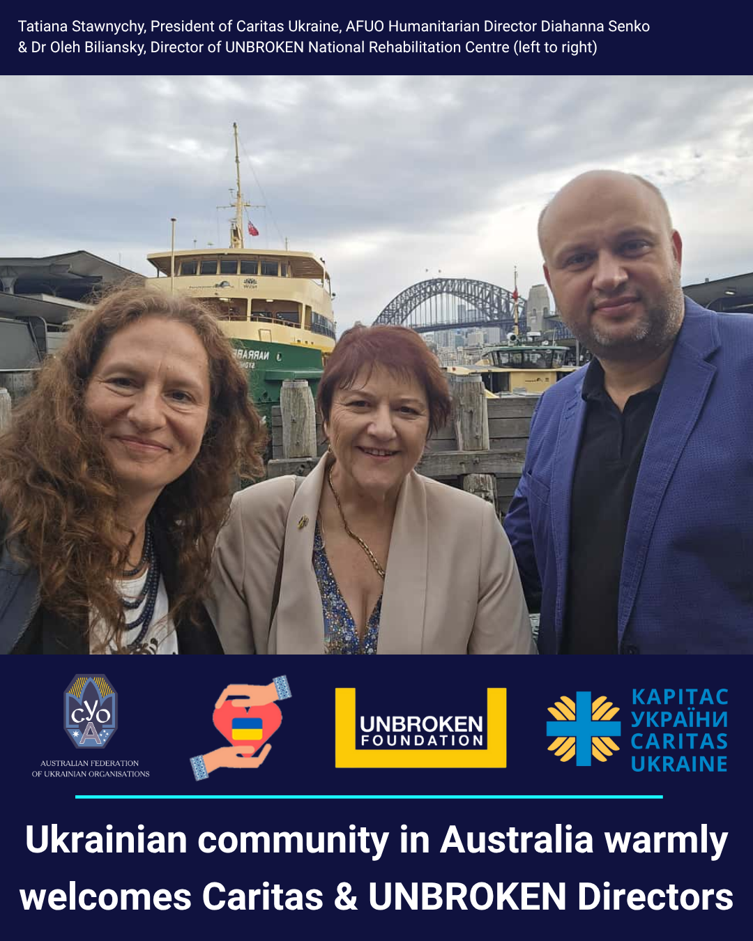This week, we are honoured to welcome two incredible leaders in humanitarian and rehabilitation care from Ukraine to Australia – Tatiana Stawnychy, President of Caritas Ukraine, and Dr Oleh Biliansky, Director of UNBROKEN National Rehabilitation Centre.