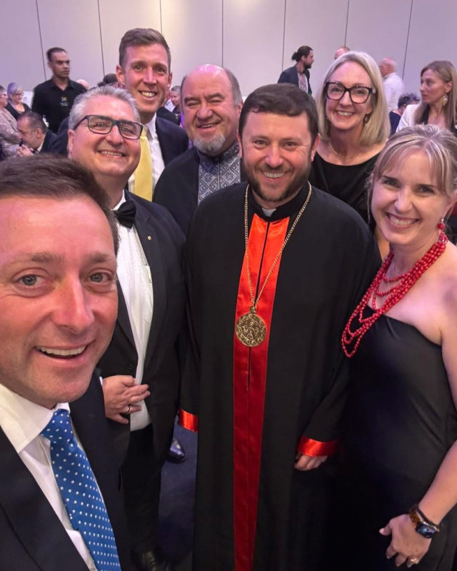 On behalf of the AFUO, Chair Kateryna Argyrou was delighted to welcome special guests to the Gala Dinner: His Excellency Ambassador Vasyl Myroshnychenko, His Eminence Cardinal Mykola Bychok, Very Reverend Archpriest Father Michael Solomko, Members of the Clergy, Anastasia Romaniw, Stefan’s children Peter and Teresa, members of the Romaniw and Moravski families, President of the Ukrainian World Congress Paul Grod, along with his wife Adrianna and their children, Senator Lisa Darmanin, Hon Keith Wolahan MP, Hon Iwan Walters, Co-Chairs of the Australian Friends of Ukraine Group of the VIC Parliament – Lee Tarlamis MP OAM and Hon Matthew Guy MP, Vivienne Nguyen AM, Timothy Beddoe, previous Chairs and friends of Stefan from the Victorian Multicultural Commission, Hass Dellal, Tassos Douvartizides, William Lye OAM KC, Cheri Ong and Professor Mark Rose, friend of the Ukrainian community and school friend of †Stefan Romaniw, who delivered Acknowledgment of Country, as well as other special guests.