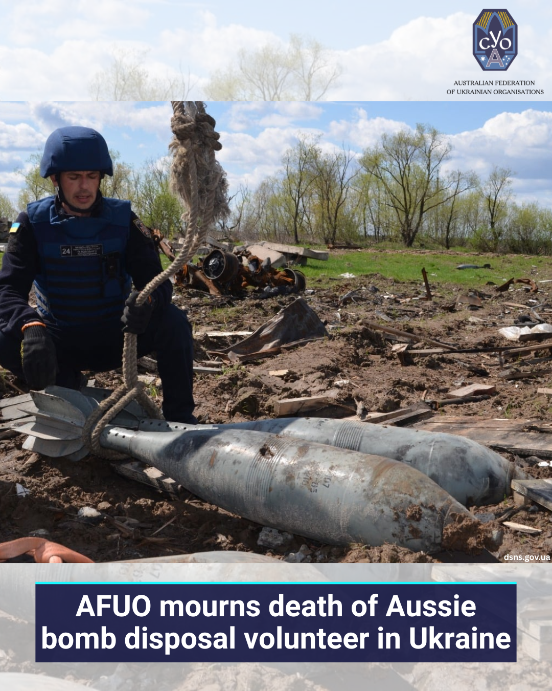 The Australian Federation of Ukrainian Organisations (AFUO) is deeply saddened by the tragic death of Nick Parsons, an Australian bomb disposal expert in Ukraine, last week.