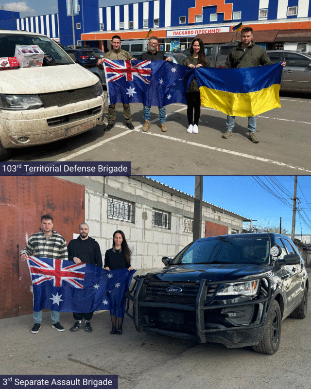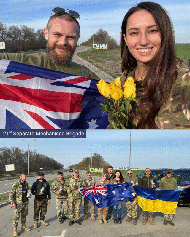 Trip to Ukraine: I was able to personally deliver non-lethal military aid to six brigades currently defending Sumy and Kharkiv regions: 21st Mechanized Brigade, 103-тя окрема бригада територіальної оборони Збройних Сил України, 61st Mechanized Brigade, 27th Rocket Artillery Brigade, 95 ОДШБр, 3 окрема штурмова бригада. The military aid fulfilled requests that came from our community members in VIC, NSW, and ACT.