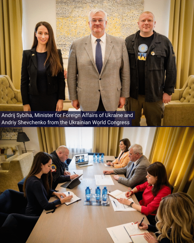 Met with Minister for Foreign Affairs Andrij Sybiha to update on work of the UWC and AFUO, and coordinate future initiatives. Paul Grod and Andriy Shevchenko.