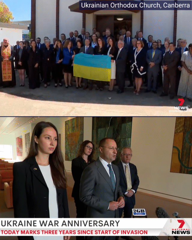 We congratulate H.E. Vasyl Myroshnychenko, Ukrainian Ambassador, and Kateryna Argyrou, AFUO Co-Chair, for their powerhouse media conference held at Parliament House, Canberra, in the morning, which kicked off strong media coverage throughout the day.