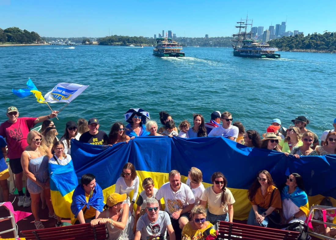 In Sydney, 300 displaced Ukrainians and Australian-Ukrainian community members were special guests on the Catherine Hamlin ferry, which participated in the famous Australia Day Ferrython.