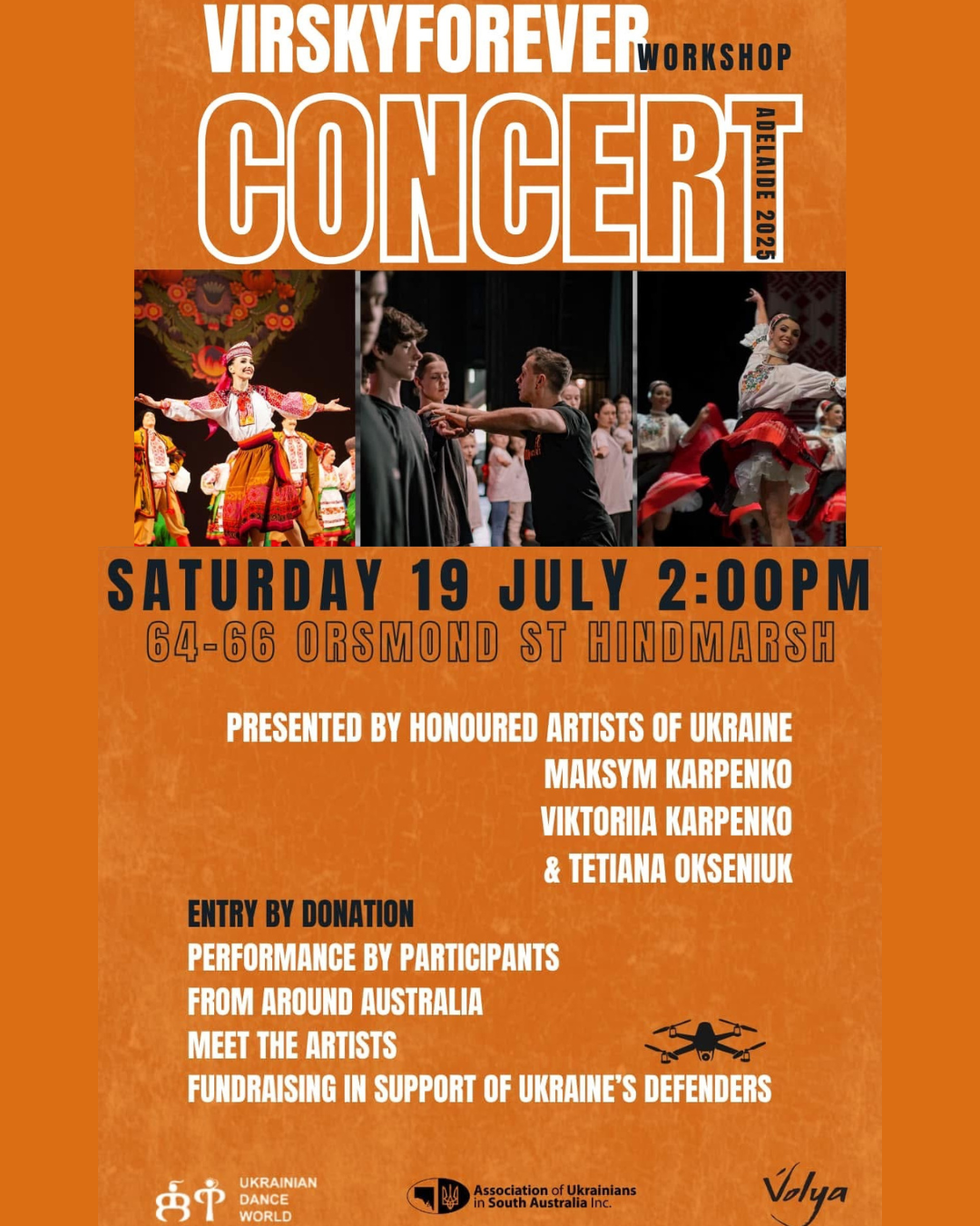 Presented by Ukrainian Dance World, Association of Ukrainians in SA, and Virsky Forever.