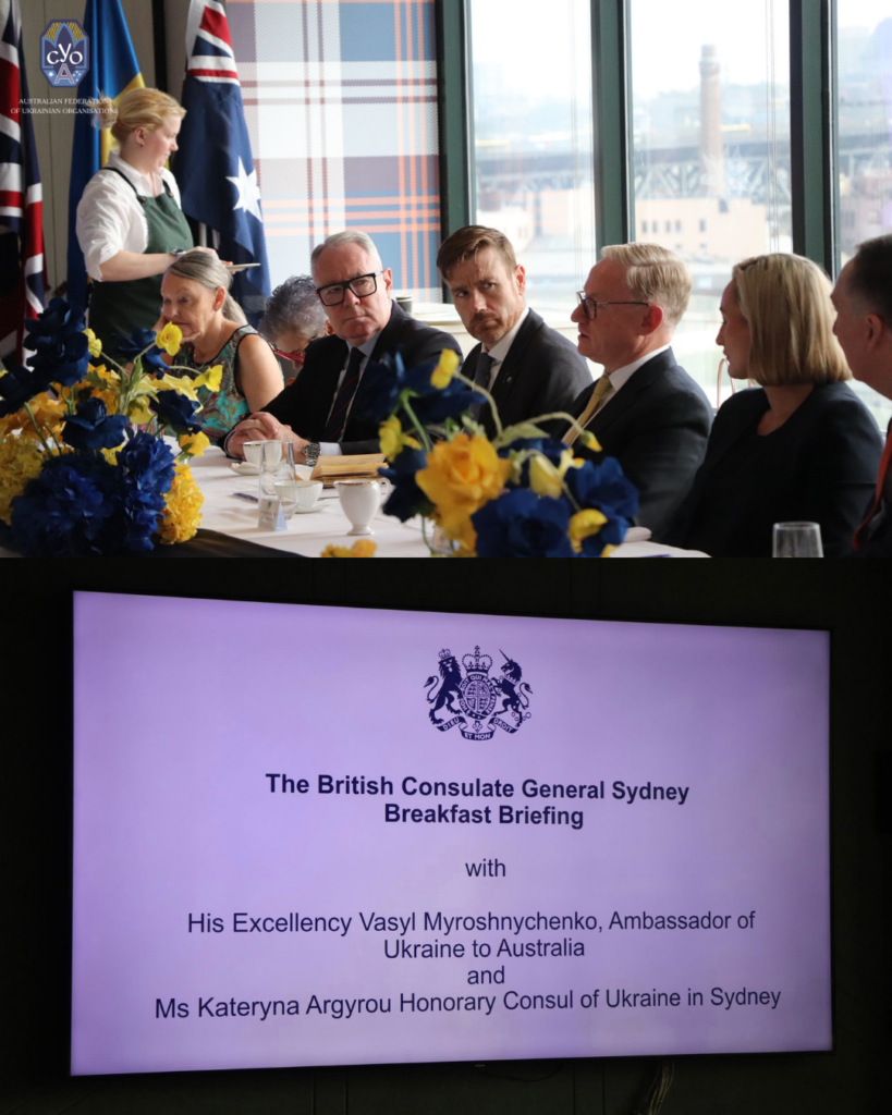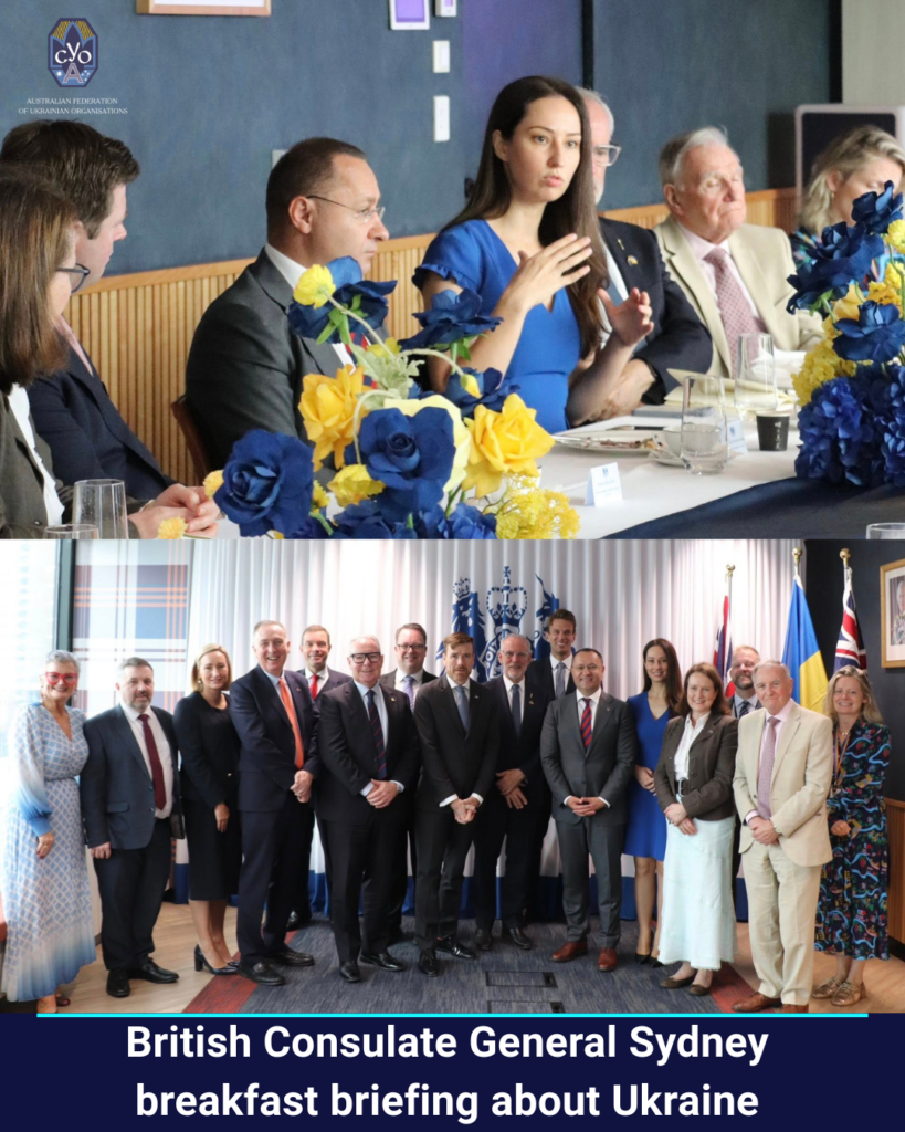 The Australian Federation of Ukrainian Organisations (AFUO) welcomes the recent morning briefing about Ukraine at the British Consulate General Sydney, hosted by Dr Brian J Jones, Acting High Commissioner of the British High Commission.