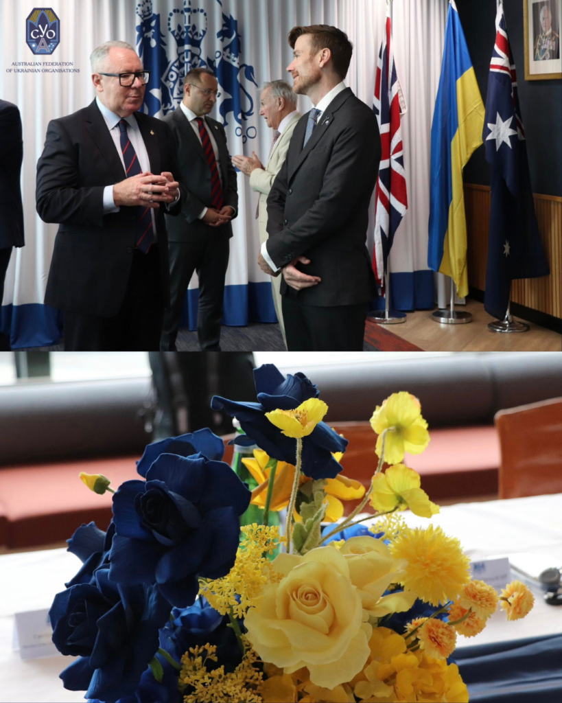 Kateryna Argyrou, Honorary Consul of Ukraine in Sydney and AFUO Chair, alongside H. E. Vasyl Myroshnychenko, Ambassador of Ukraine to Australia and NZ, briefed attendees on russia’s ongoing war against Ukraine, its devastating impact on civilians, and the need for sustained international support for a just and lasting peace.