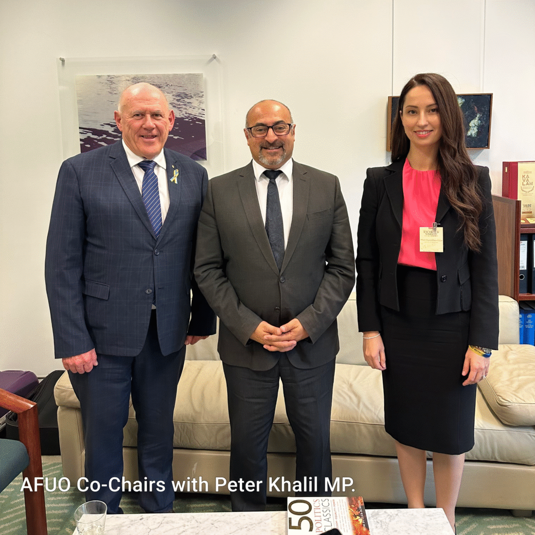 Stefan Romaniw OAM and Kateryna Argyrou, Co-Chairs of the Australian Federation of Ukrainian Organisations (AFUO), held meetings in Canberra on 15 June 2023 with senior Government and Opposition MPs to report about AFUO initiatives and deepen relationships with key decision makers and influencers.