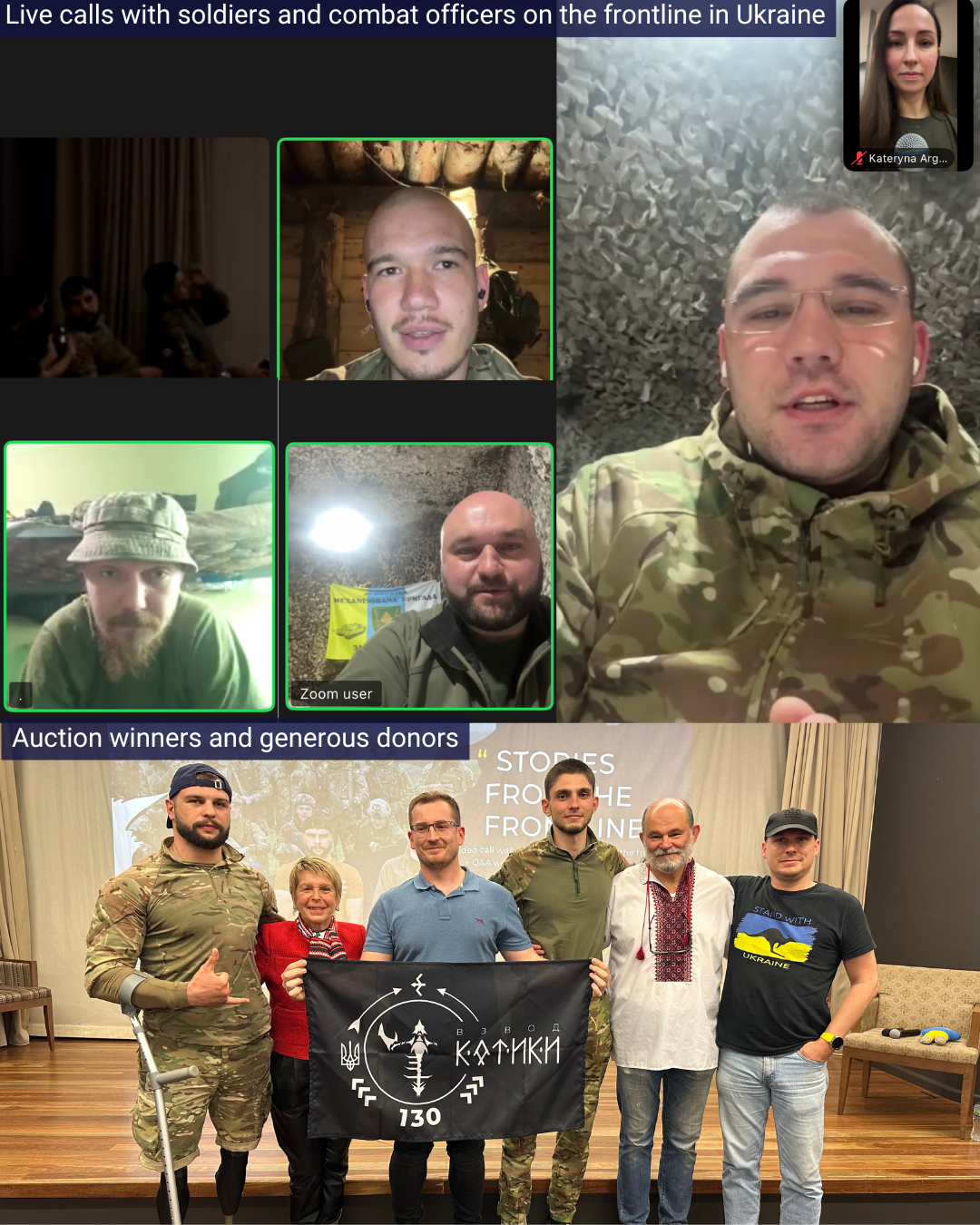 “Stories from the frontline” – for the first time in Australia, we were able to organise 4 live calls with Ukrainian soldiers and officers who are currently on the frontline, defending Ukraine. We were able to hear firsthand what the conditions are like and what we can do as a community to support our frontline heroes. With the support of very generous donors, we were able to raise $13,551.60 which will allow us to purchase 2 reconnaissance drones for the 22nd Brigade (22 окрема механізована бригада) and the 130th Battalion (130 Батальйон територіальної оборони).