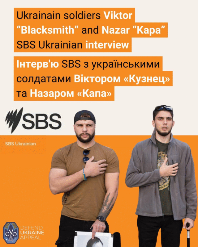 Defend Ukraine Appeal – this week, the drones we raised funds for at our “Stories from the frontline” are being delivered to the 22nd brigade and 130th battalion in Ukraine by a network of our dedicated volunteers. Viktor and Nazar were interviewed by Tetiana Koldunenko for SBS Ukrainian – you may listen to the full interview here: https://tinyurl.com/45wfd64p . The Defend Ukraine Appeal also received a very generous donation of $20,000 from the Burton Family this week – grateful for this generous support which will aid our frontline heroes!