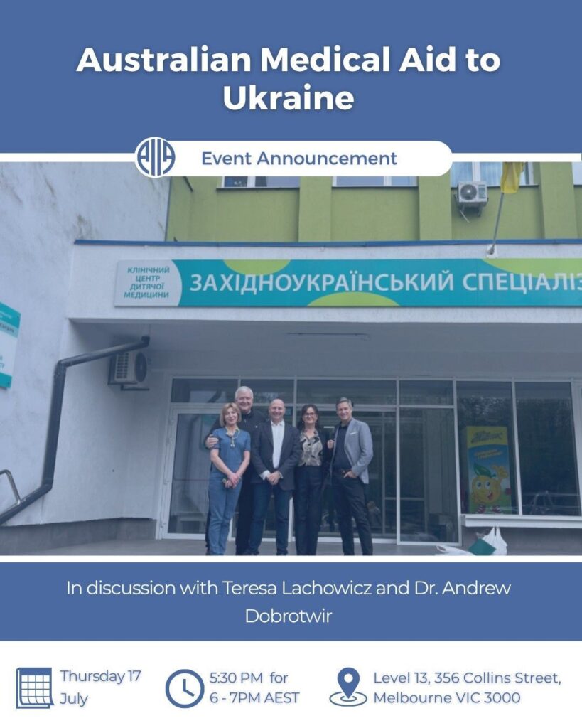 Saving Lives! “Australian Medical Aid to Ukraine: the view from the ground” – Australian Institute of International Affairs Victoria (@aiiavic) to host representatives of the Ukraine Crisis Appeal (@ukrainecrisisappeal) and the AFUO (@ozeukes) on 17 July in Melbourne