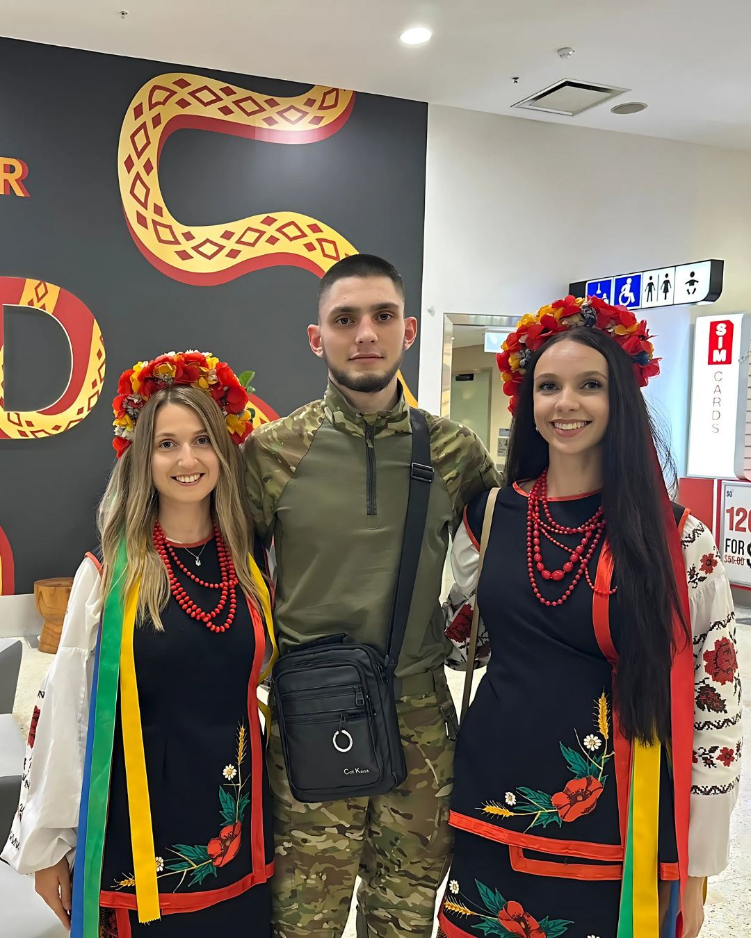 Ukrainians and supporters welcome Nazar “Kapa”, a young Ukrainian defender, to Australia for innovative surgery in Sydney!