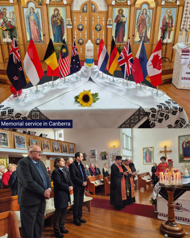 In Canberra, the chargé d’affaires of The Netherlands, the Deputy British High Commissioner, and consular officials from the Ukrainian and Indonesian Embassies attended the memorial service.