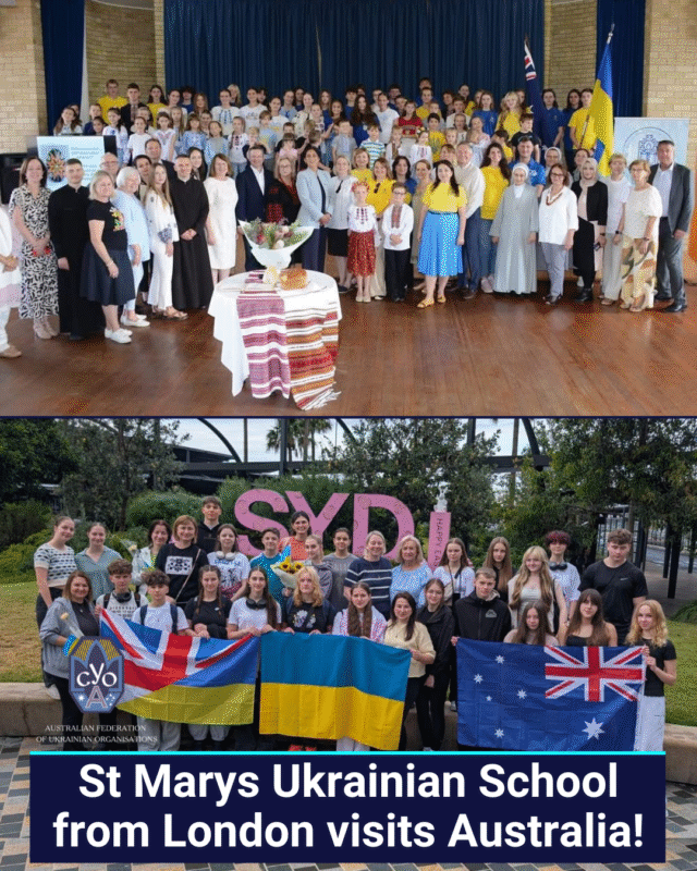 The Australian Federation of Ukrainian Organisations (AFUO) warmly welcomes students and teachers of St Mary’s Ukrainian School to Australia, all the way from London!
