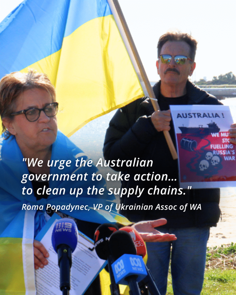 A powerful interview with AFUO Chair Kateryna Argyrou on ABC Radio Perth Drive prior to the tanker’s arrival