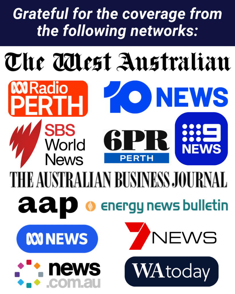 ABC News, ABC Radio, SBS News, 9 News, 7 News, 10 News, AAP, 6PR radio, news.com, The West Australian, WA Today, Australian Business Journal, Energy News Bulletin.