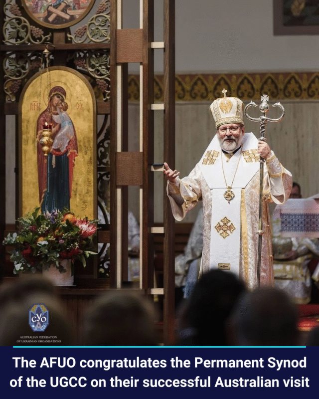 The Australian Federation of Ukrainian Organisations congratulates and extends its deepest gratitude for the successful completion of Australia’s first hosting of the Permanent Synod of the world-wide Ukrainian Greek Catholic Church (UGCC), invited by His Eminence Cardinal Mykola Bychok.