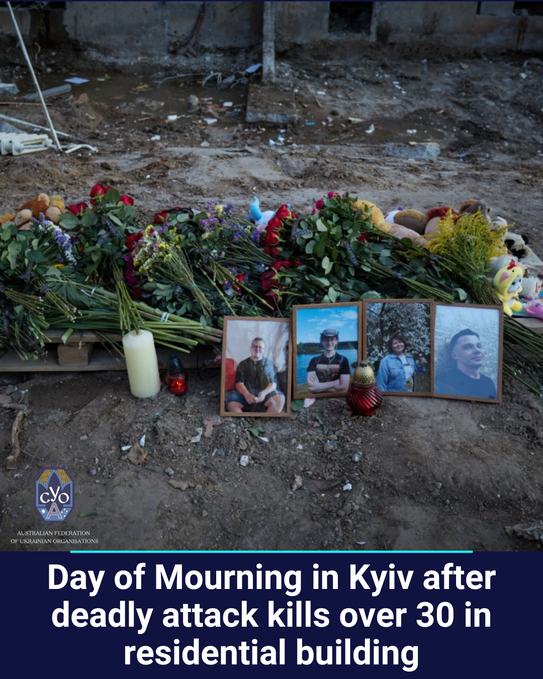 Day of Mourning declared on 1 August in Kyiv as death toll from russian strike on residential building areas climbs to 31, including 5 children, the youngest only 2 years old.