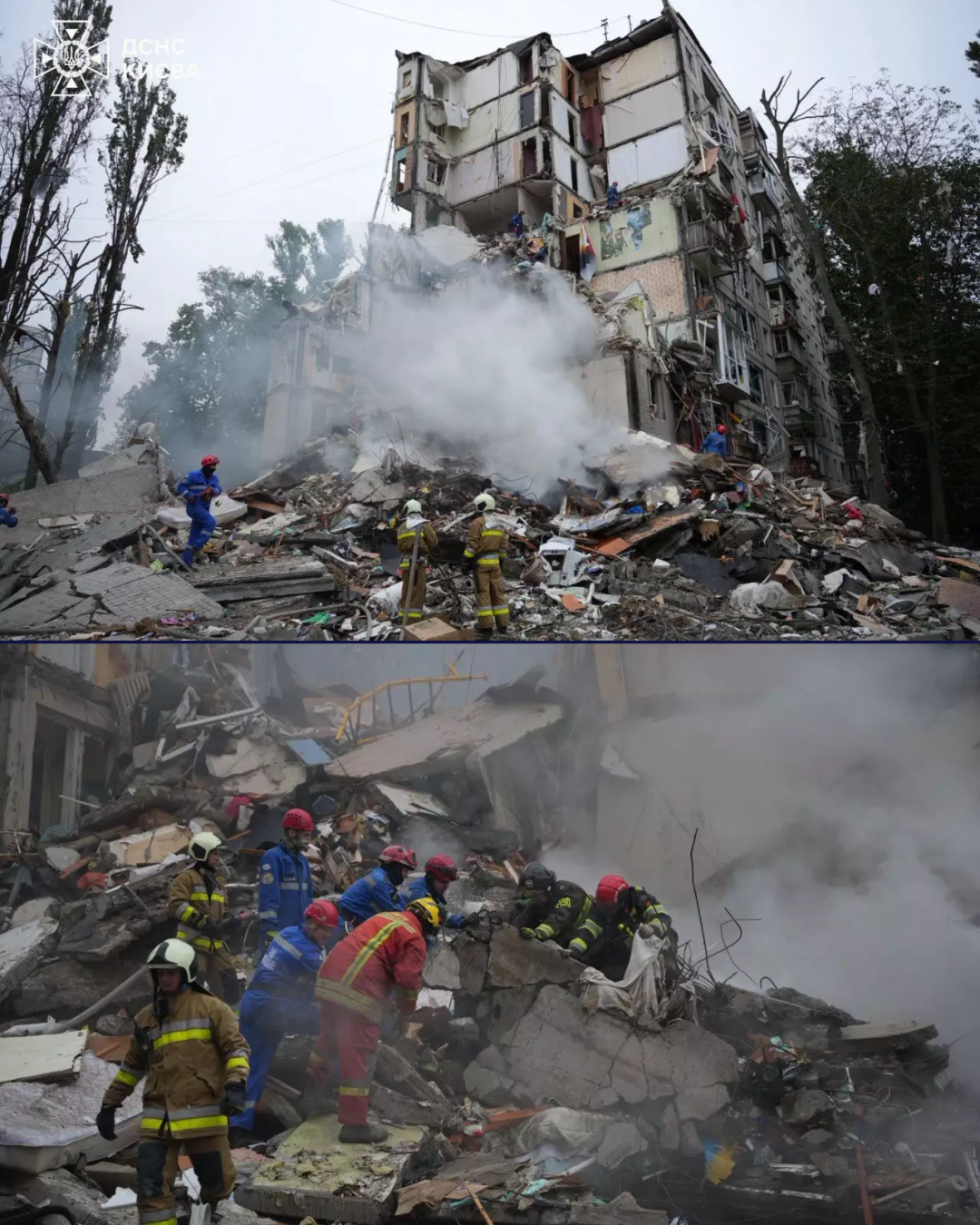 russia launched a barrage of over 300 drones on Thursday evening, one of the deadliest the capital has seen since the start of the full-scale invasion. 33 civilians who lived in the 9-storey apartment building were killed, 159 injured, including 16 children ![]()