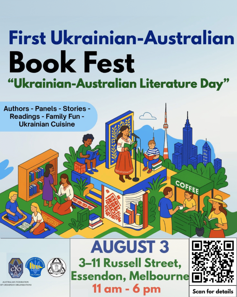 Join us for a vibrant day of stories, poetry, and community! Celebrate Ukrainian & Australian voices through author talks, book signings, kids’ story time, cookbooks & tastings, stalls, raffles & more. This event is a momentous step forward in community and cultural outreach for our Ukrainian-Australian diaspora, featuring home-grown talent and one of Ukraine’s leading voices in journalism, media and communication.