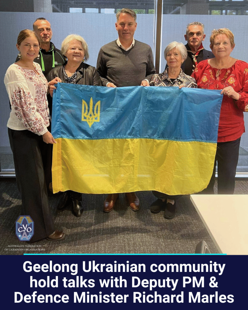 On 17 November, leaders and representatives from the Geelong Ukrainian community met with Deputy PM & Defence Minister Richard Marles MP to discuss Australia’s role in supporting Ukraine and address the critical issue of russian blood oil entering Geelong Port.