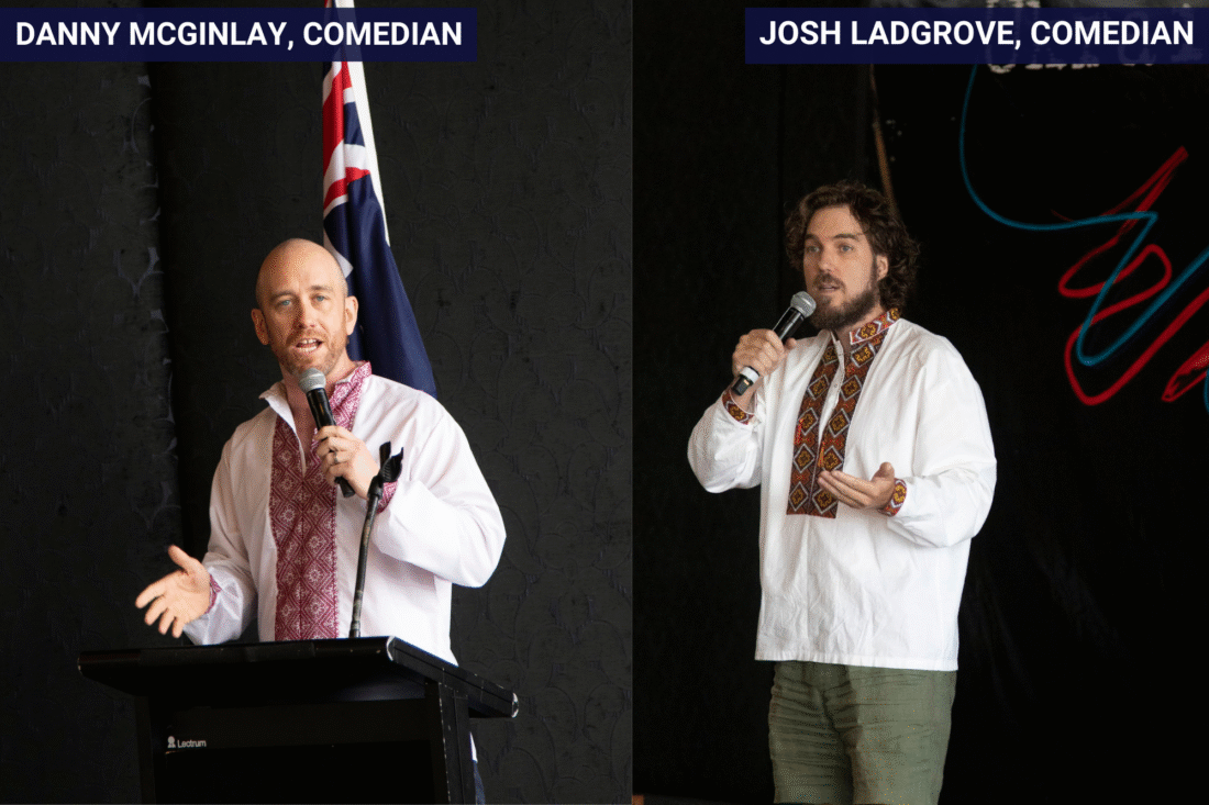 Congratulations to all the amazing dancers and performers, hailing from all over Australia: Roztiazhka Ukrainian Cossack Dancers (Perth), Zahrava Ukrainian Youth Association Dance Ensemble (Sydney), Volya Ukrainian Cossack Dancers (Adelaide), Cossack Brothers (Melbourne), Lehenda Ukrainian Dance Company (Melbourne), Verchovyna Ukrainian Dance Ensemble (Melbourne), Jaga Band (Sydney) and our two fantastic comedians, MC Danny McGinlay and Joshua J Ladgrove.