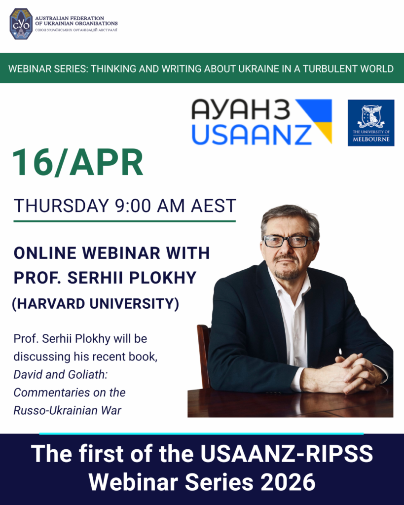 This session opens the USAANZ–RIPSS webinar series, “Thinking and Writing about Ukraine in a Turbulent World,” bringing together leading authors and scholars to deepen understanding of Ukraine’s past and present: https://www.ukrainianstudies.asn.au/newsupdates/news/the-usaanz-ripss-book-presentation-webinars-thinking-and-writing-about-ukraine-in-a-turbulent-world/