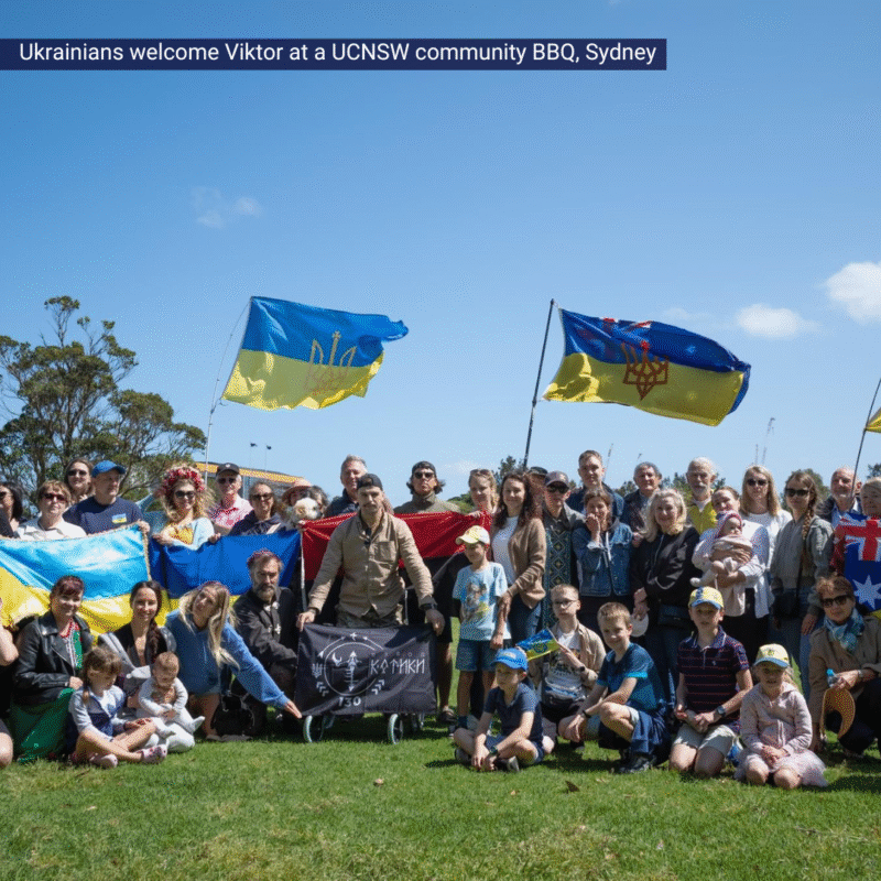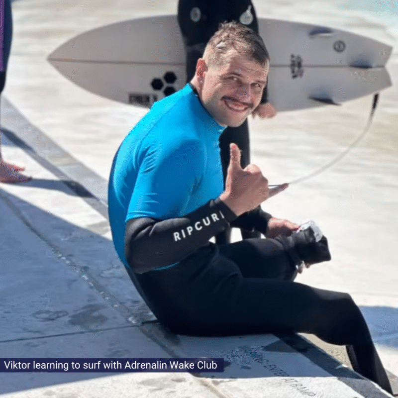 While waiting for his new legs Viktor has been busy. He has attended Ukrainian community events in Sydney, conducted media interviews and even learned how to surf!