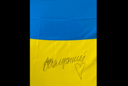 Make a difference and lodge your generous bid on one of a range of items including a Ukrainian flag signed by General Valerii Zalushnyi, lunch with the Ambassador of Ukraine, Vasyl Myroshnychenko, and branded items from famous Ukrainians such as Jamala, Kalush and Tvorchi.