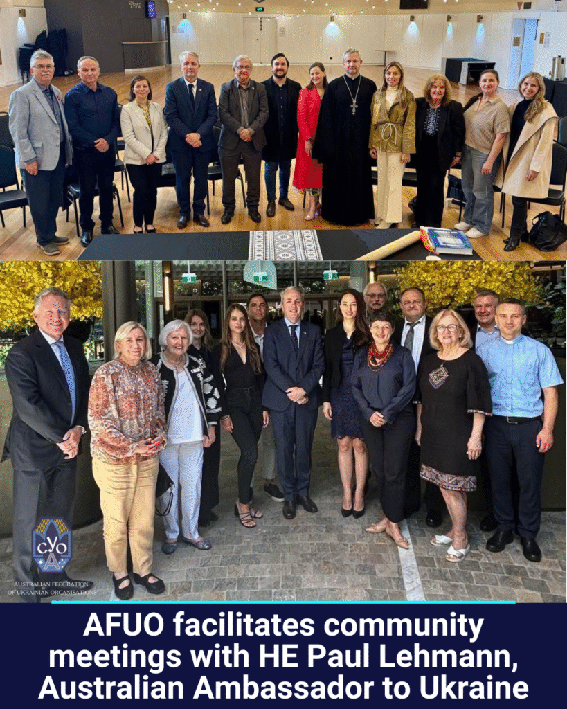 The AFUO is honoured to have facilitated important meetings with His Excellency Mr Paul Lehmann, Australian Embassy, Ukraine, with leaders and representatives of the Ukrainian community in Melbourne and Sydney last week.