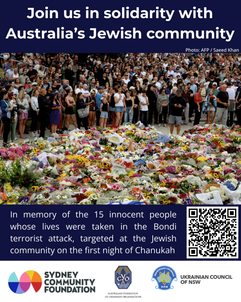 Australian Federation of Ukrainian Organisations, Ukrainian Council of NSW – ОУГ НПВ, Sydney Community Foundation, #SupportBondiVictims
