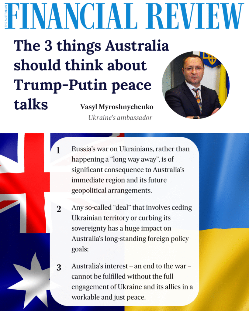 As Ambassador Vasyl Myroshnychenko wrote in today’s Australian Financial Review, backing Ukraine is firmly in Australia’s national interest: http://bit.ly/4mCBi6u
