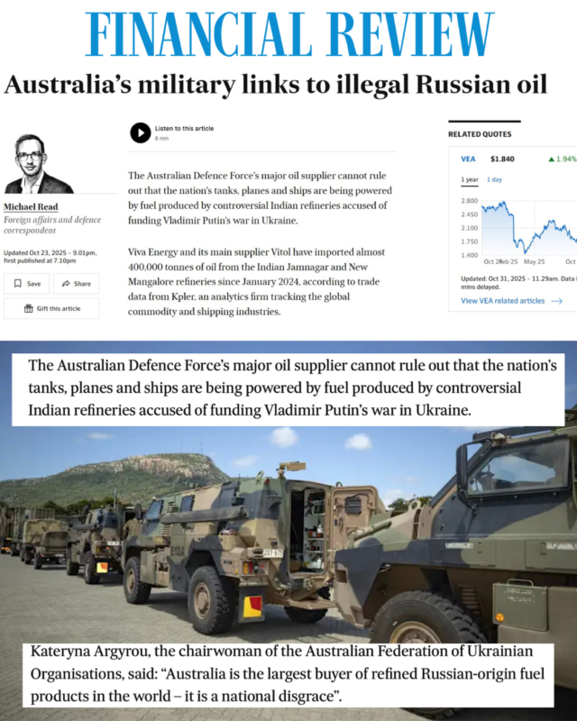 Australia continues importing refined russian crude oil while Ukrainian cities burn. Every dollar we spend on russian oil funds Putin’s war machine.