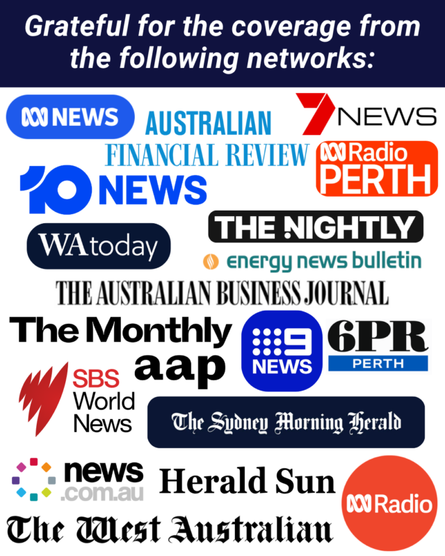 📰 Extensive media coverage – ABC News, ABC Radio, SMH/The Age (David Crowe), The Herald Sun (Mark Dunn), the Australian Financial Review, Australian Business Journal, SBS News, 9 News, 7 News, 10 News, The West Australian, WA Today, Energy News Bulletin, AAP, Radio 6PR, news.com & The Monthly.