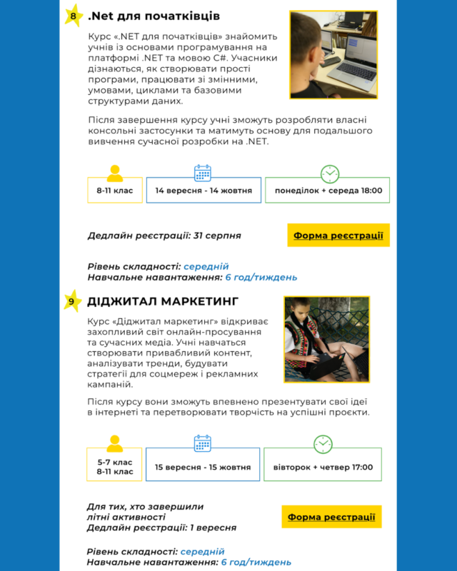 Programs are conducted online in Ukrainian and cover a wide range of exciting, future-focused areas:
