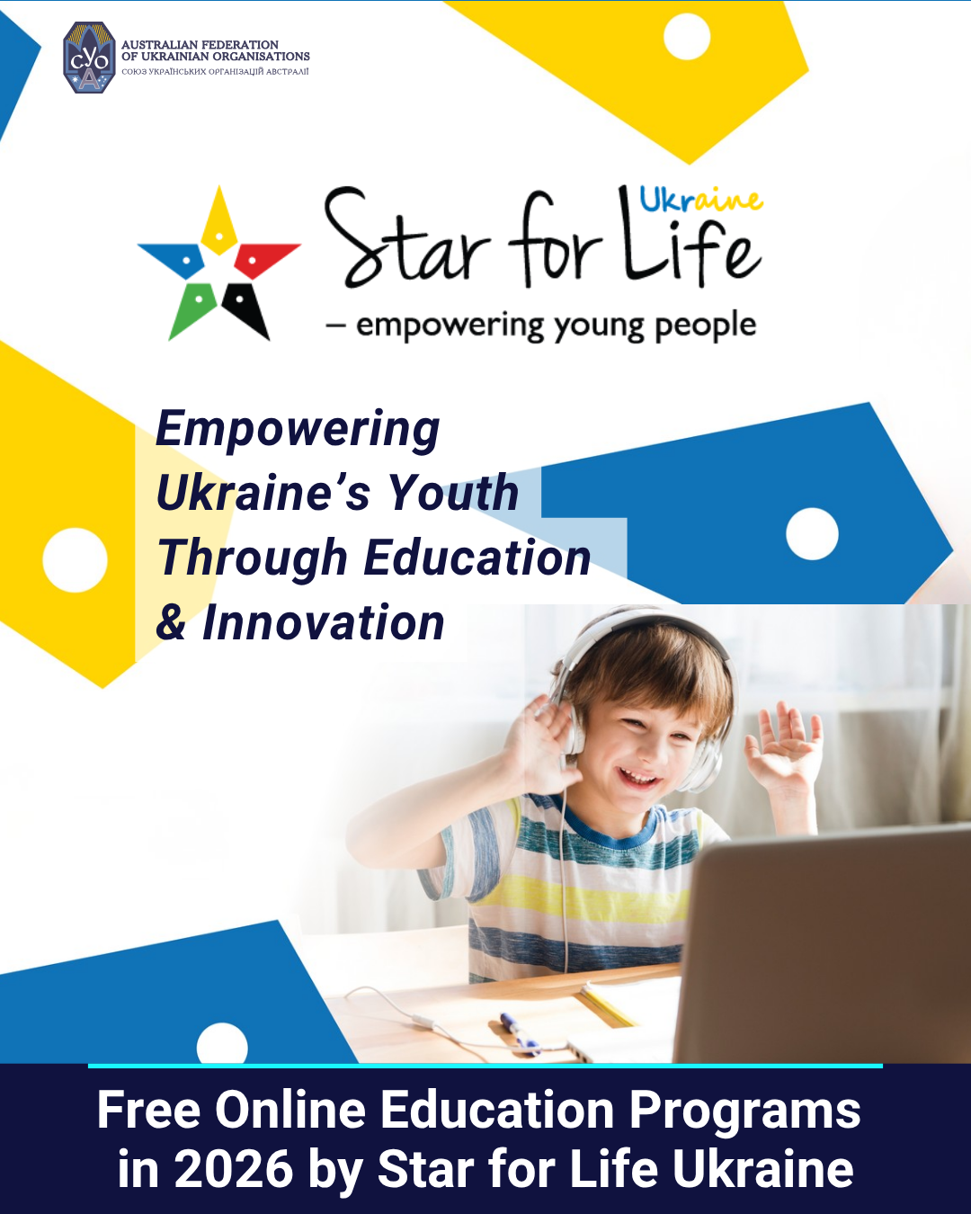 Ukrainian children and adolescents aged 10-17 living abroad, including in Australia and New Zealand, are invited to take part in FREE online educational programs in 2026 delivered by the Star for Life Ukraine Charitable Foundation.