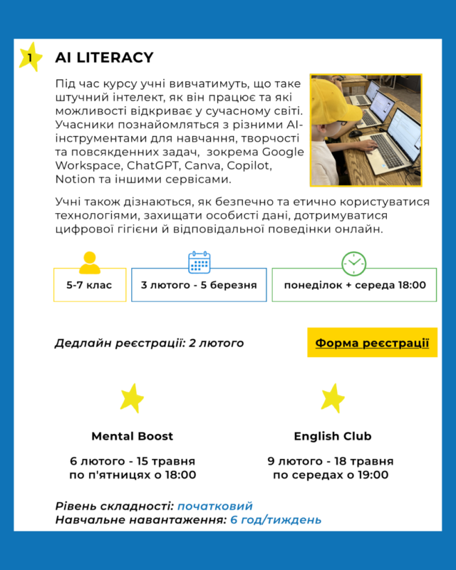 🌍 Клуби з покращення англійської мови + програми емоційного та соціального розвитку