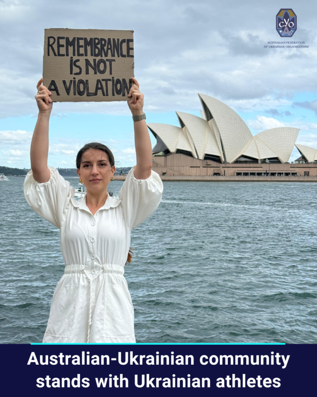 Across Australia, Ukrainian community members – supported by the Australian Federation of Ukrainian Organisations – stand in solidarity with Ukrainians and supporters worldwide, calling on the International Olympic Committee to reverse the disqualification of Ukrainian skeleton athlete Vladyslav Heraskevych for his act of remembrance.