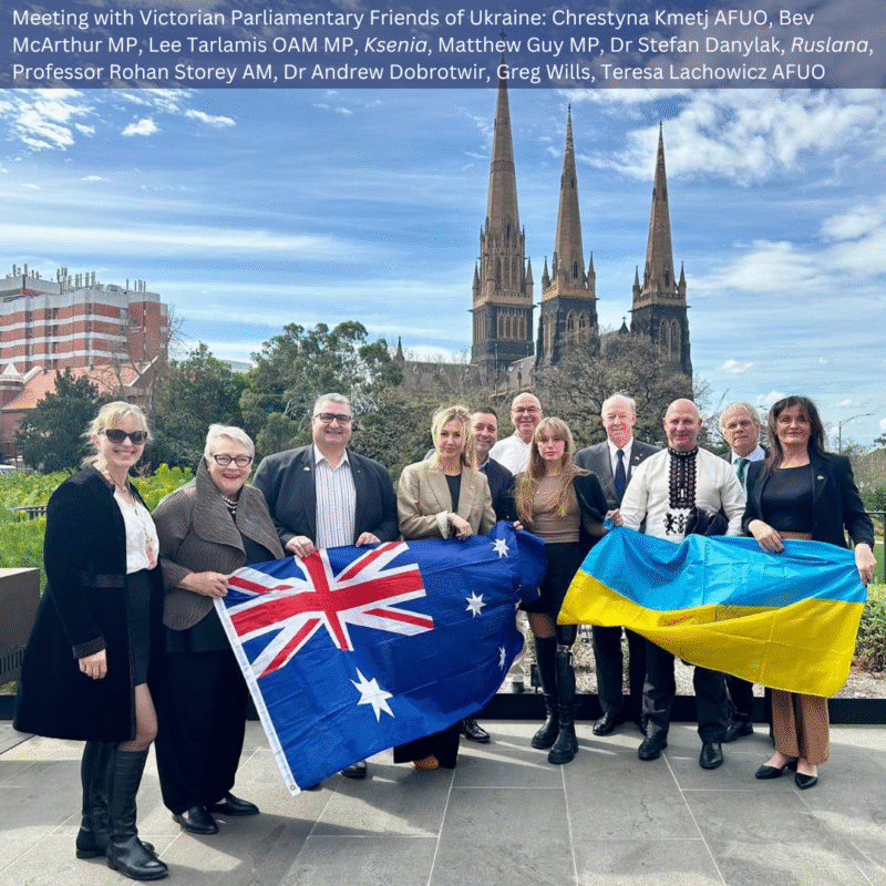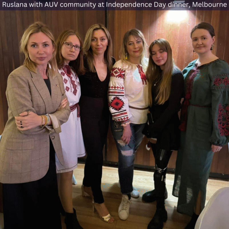 In Australia for Ukraine’s 33rd Independence Day commemorations, Ruslana attended Ukrainian Independence Day and rally events in Melbourne and Sydney and met with the Victorian Parliamentary Friends of Ukraine, the Victorian Chamber of Commerce and Industry and high-powered business people in Sydney.