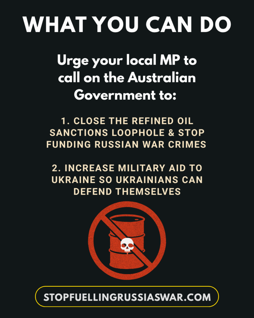 Email your MP today: standwithukraine.good.do/aus-stop-fueling-russias-war/message-local-mps/