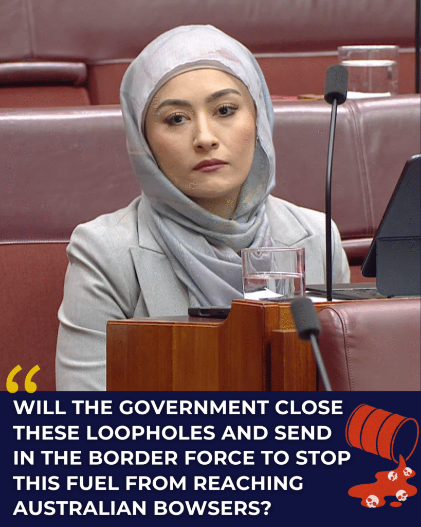 🗣️ ”Will the Government follow the EU’s lead to close these loopholes that are available for third party countries and send in the Border Force to stop this fuel from reaching Australian bowsers?” Senator Payman concluded.