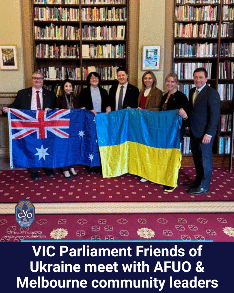 Australian Federation of Ukrainian Organisations, Association of Ukrainians in Victoria representatives & Olha Herasymiuk, Chair of Ukraine’s National Council on TV & Radio Broadcasting, hold special visit with Victorian Parliament Friends of Ukraine Group on 31 July.