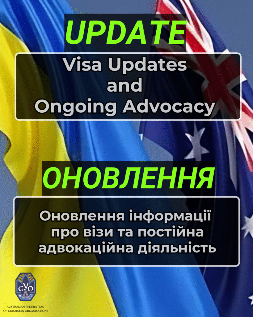 До всіх переміщених українців: ми не забули про вас, і ви не самотні. СУОА продовжуватиме домагатися чіткого, постійного шляху отримання візи для всіх переміщених українців в Австралії.