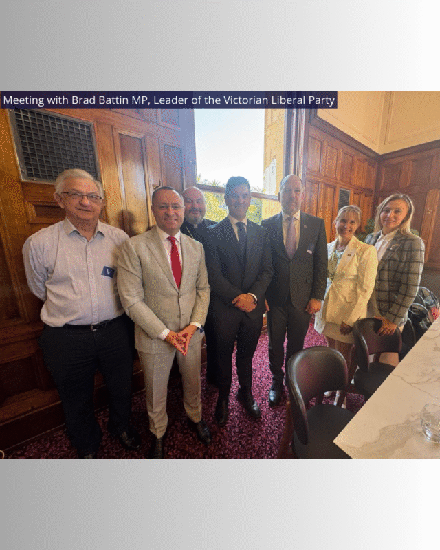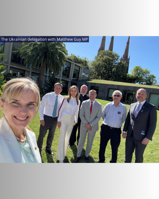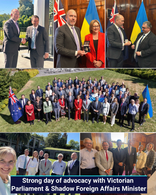 The AFUO was proud to facilitate a series of meetings this week for the UWC President with Brad Battin MP, Leader of the Victorian State Opposition, Matthew Guy MP (of Ukrainian descent) and Mr Lee Tarlamis MP OAM MP, Co-Chairs of the Victorian Australia-Ukraine Friends of Ukraine Group as well as David Coleman – Member for Banks, Federal Shadow Minister for Foreign Affairs.