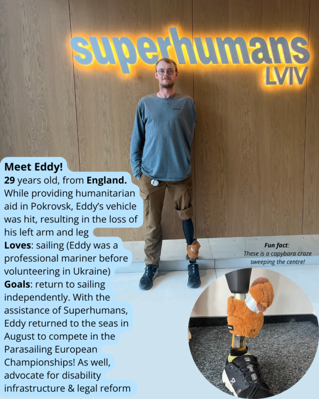 Superhumans is not just a medical facility – it is a movement for dignity, inclusion, and innovation. Every prosthetic, every surgery, every story like Maksym’s and Eddy’s is made possible by global support. In fact, Superhumans doesn’t feel like a hospital at all. The patients and staff have cultivated a welcoming, humorous and community atmosphere, focused not only on physical rehabilitation, but mental and social. Many of the patients report that they have accomplished many feats that they never even thought possible when they were able-bodied.