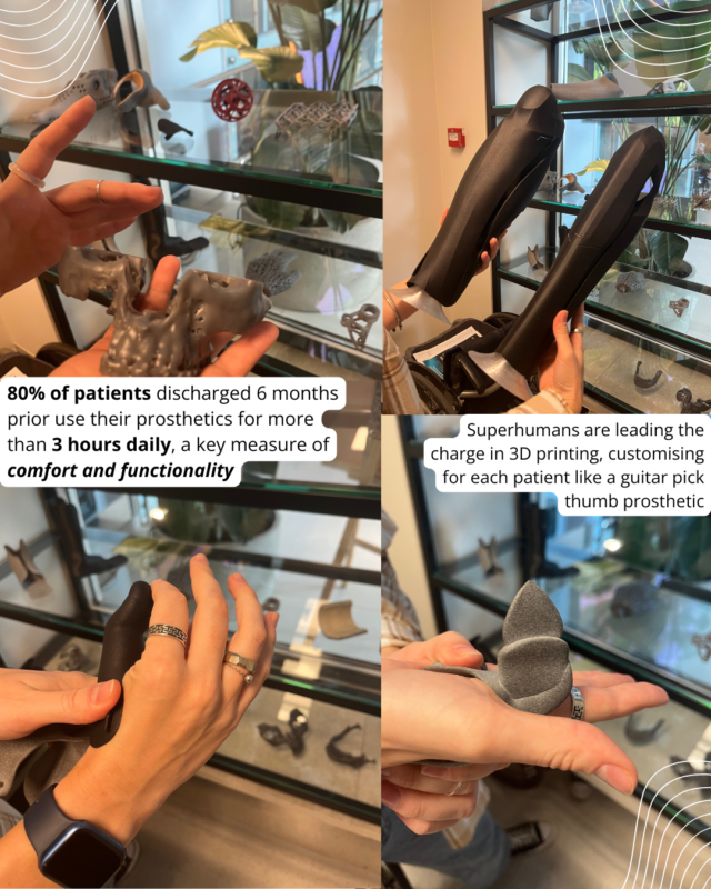 Superhumans leads Ukraine in 3D-printed prosthetic technology, producing lightweight carbon fibre limbs faster and more affordably than ever before. Every design is personalised – even down to prosthetic feet made for women’s heels – with over 80% of patients discharged 6 months prior using their prosthetics for more than three hours daily, a key measure of comfort and functionality.