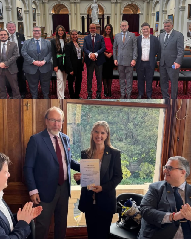 Attendees of the historic bilateral meeting included VIC Deputy Premier Ben Carroll MP, AFUO Chair Kateryna Argyrou, AFUO Director, AUCC VP & UCCI Australian Representative Chrestyna Kmetj, Pavlo Troian (Embassy), UCCI President Gennadiy Chyzhykov, Michael Galea MP, Lee Tarlamis MP, ACCI (Australia) President Mark Birrell AM, VCCI (VIC) President Adrian Kloeden. Congratulations to AFUO Director Chrestyna Kmetj on her official appointment as UCCI Australian Representative by Gennadiy Chyzhykov.