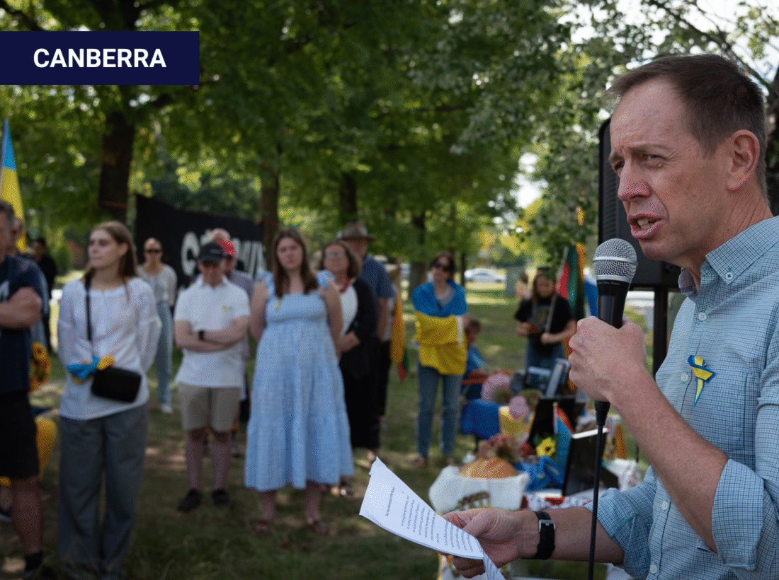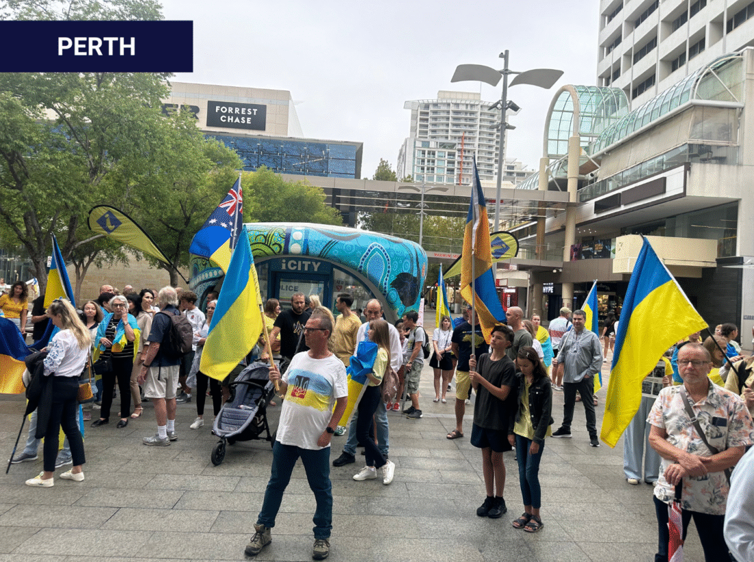 Events were held in over 1,000 cities around the world and in all Australian capital cities, including Melbourne, Sydney, Adelaide, Brisbane, Canberra, Perth, Hobart and Darwin. Rally goers held blue and yellow flags and banners, wore Ukrainian embroidered shirts and clothing, and stood united in honouring the victims of Russia’s brutal war and saluting the heroic courage and resistance of the Ukrainian people.