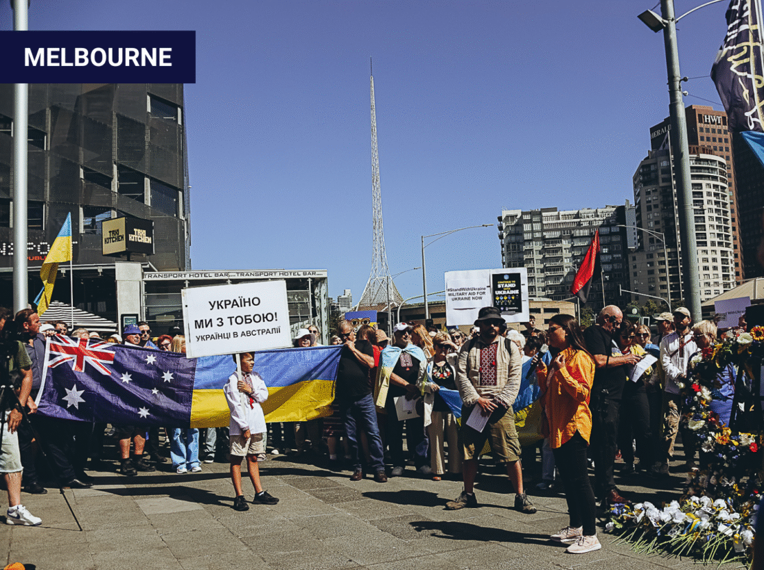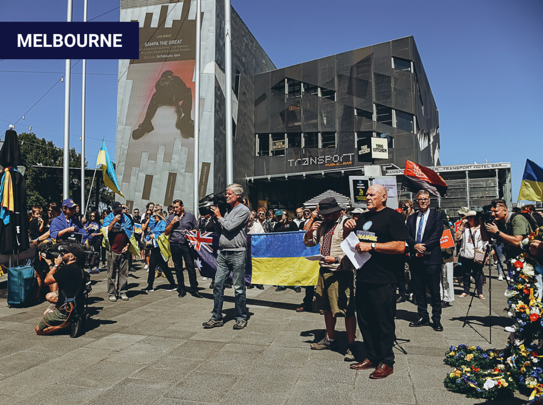 Over 3,500 supporters of Ukraine gathered around Australia to mark the second anniversary of Russia’s full-scale invasion of Ukraine on 24 February 2024 and call for more military aid to help the country defend democracy, independence and the rules-based order.
